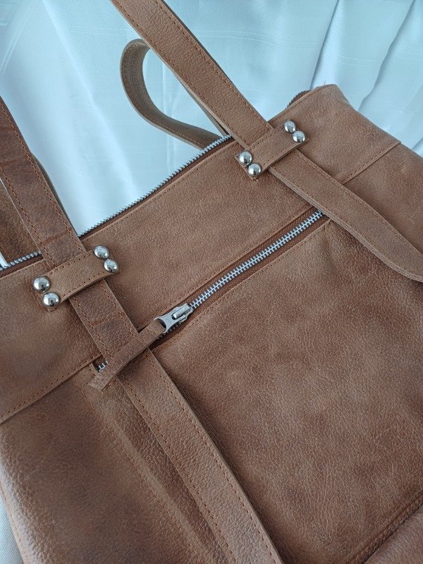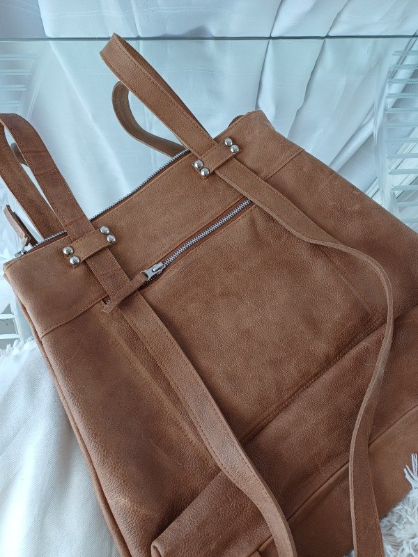 Medidas: alto 38 cm , largo (cierre ) 33 cm , largo de base 38 cm , prof 13 cm, Largo de correas 100 cm. Correa corta porta hebilla (no regulable) 22 cm