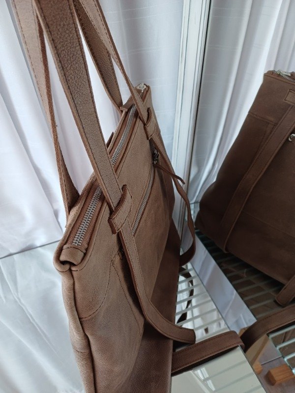 Medidas: alto 38 cm , largo (cierre ) 33 cm , largo de base 38 cm , prof 13 cm, Largo de correas 100 cm. Correa corta porta hebilla (no regulable) 22 cm