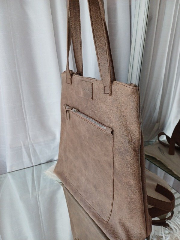 Bolsillo: delantero y trasero con cierre. Interno de cuero.