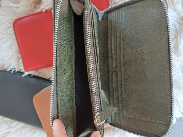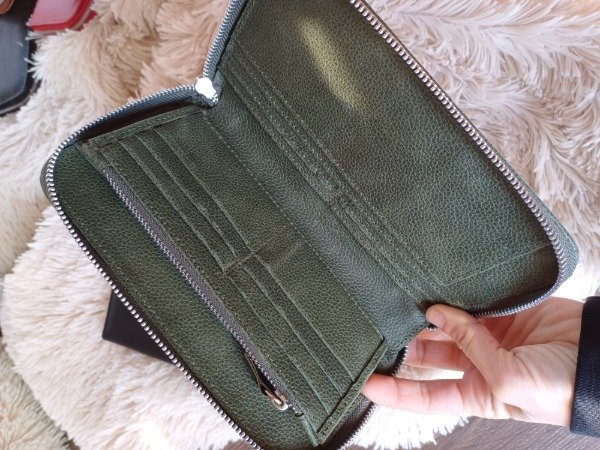 Espacio para billetes , 10 trj , monedero con cierre, porta papeles.