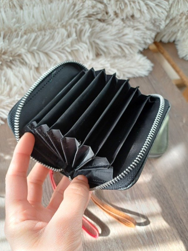 Ideal para llevar muchas tarjetas. También podes agregar billetes doblados