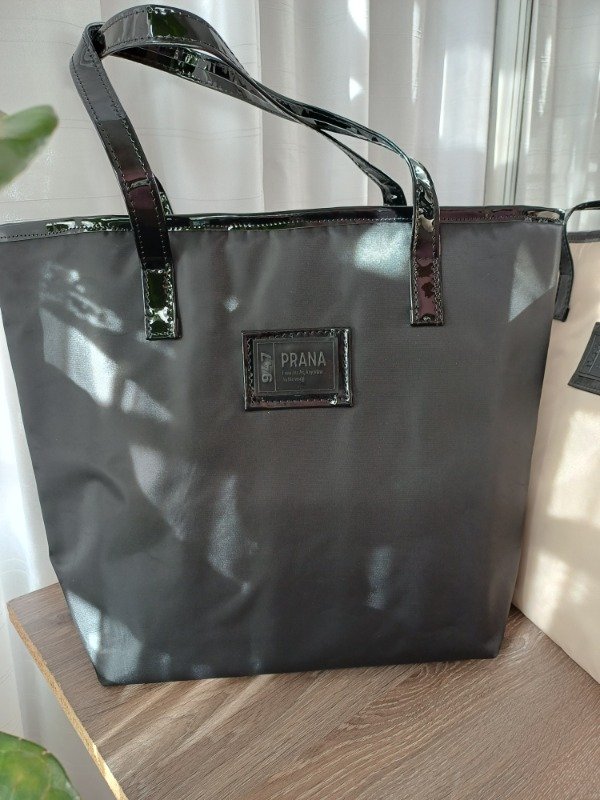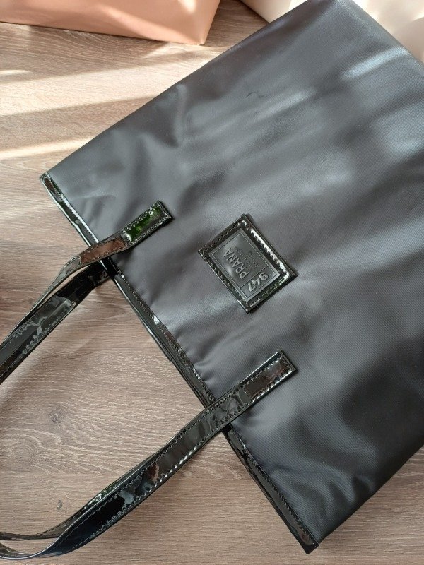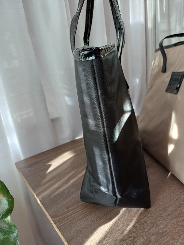 Material: rasado semi impermeable combinado con eco cuero charol