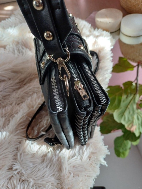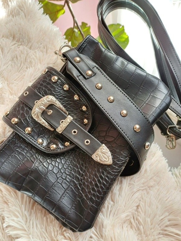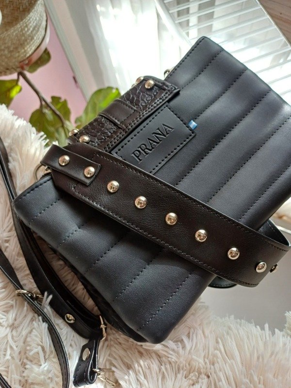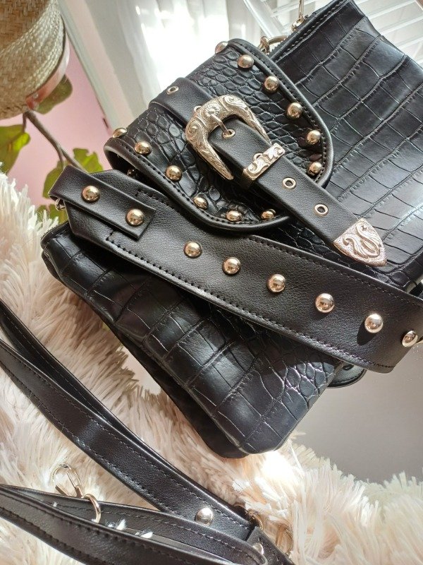 Correas , morralera larga regulable, correa corta con tachas. Todas las opciones son desmontables.