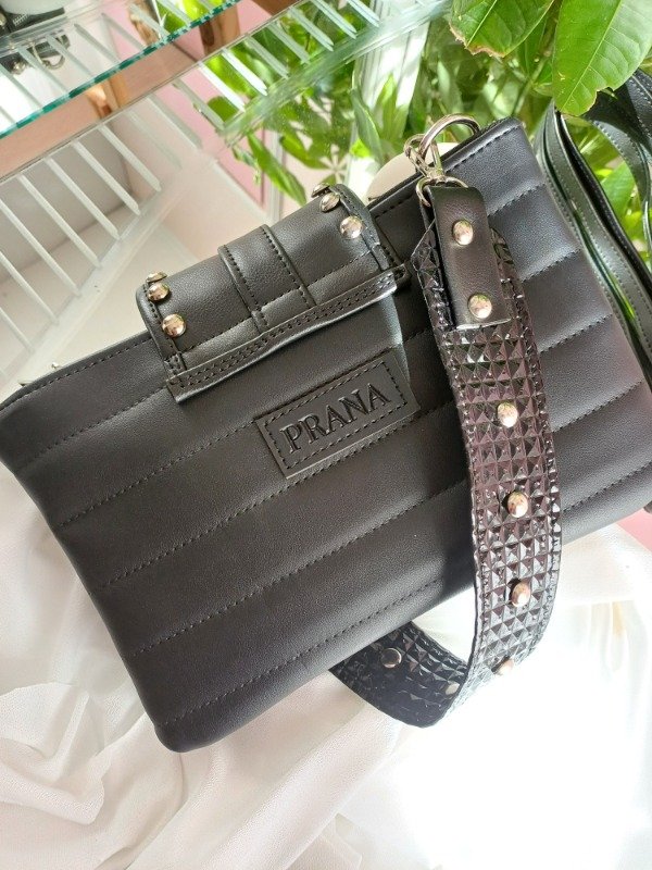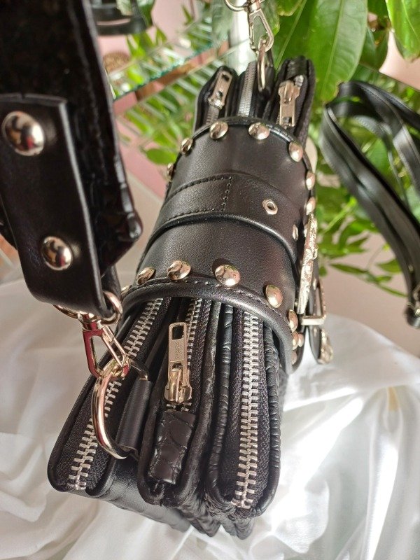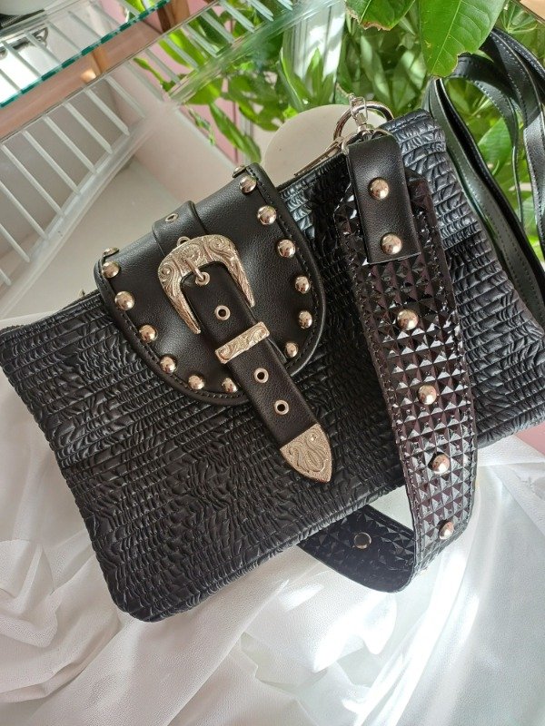 Correas , morralera larga regulable, correa corta con tachas. Todas las opciones son desmontables.
