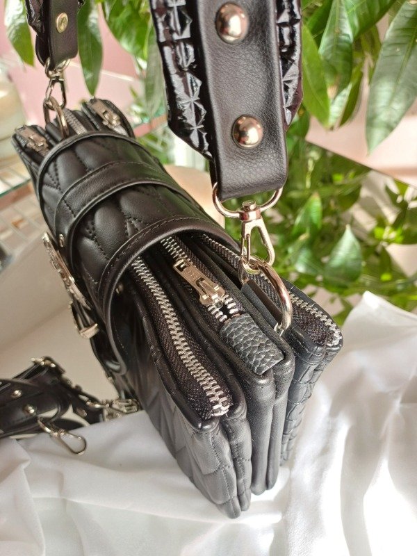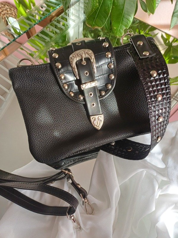 Correas , morralera larga regulable, correa corta con tachas. Todas las opciones son desmontables.