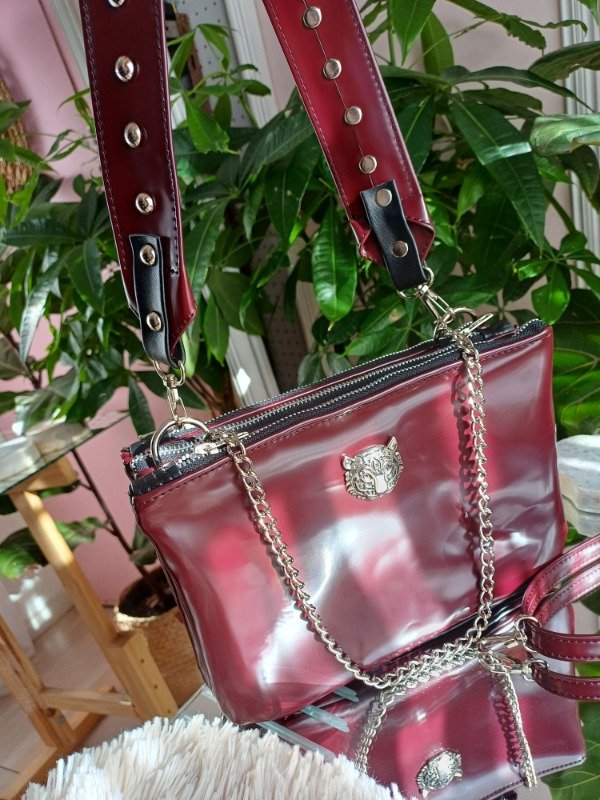 3 correas: morralera larga regulable, correa corta con tachas. Todas las opciones son desmontables (cadena fija)