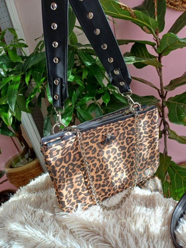 3 correas: morralera larga regulable, correa corta con tachas. Todas las opciones son desmontables (cadena fija)