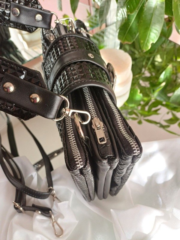 Correas , morralera larga regulable, correa corta con tachas. Todas las opciones son desmontables.