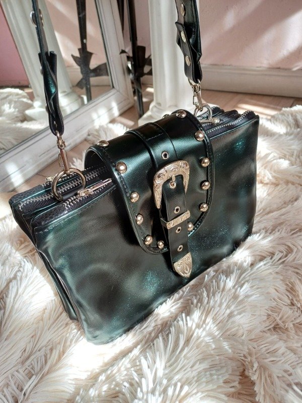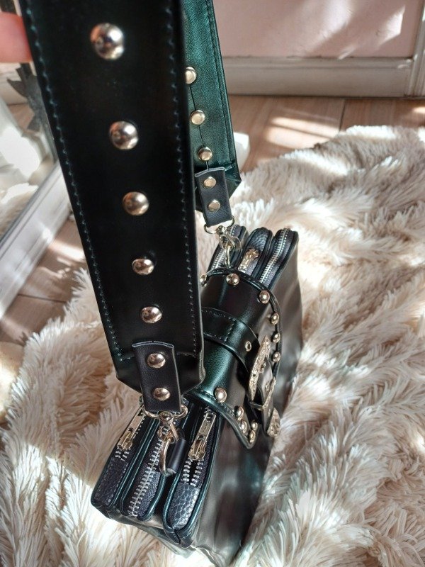 Correas , morralera larga regulable, correa corta con tachas. Todas las opciones son desmontables.