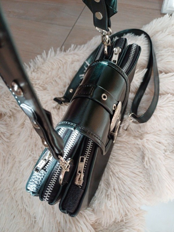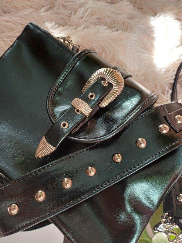 Correas , morralera larga regulable, correa corta con tachas. Todas las opciones son desmontables.
